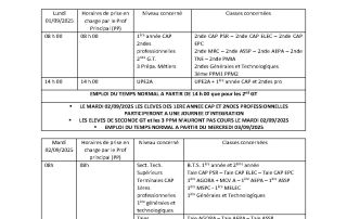 PLANNING DE PASSAGE À LA RESTAURATION SCOLAIRE   - Semaine 18 : du lundi 3 au vendredi 7 mai 11h20-12h00 : SEP + 1ères et Tles Techno 12h10-12h50 : toutes les classes de Tle générale 13h00-13h35 : toutes les classes de 1ère générale   -Semaine 19 : le lundi 10 et le mardi 11 mai 11h20-12h00 : les classes de 2de générale sauf les 2 classes passant de 13h00 à [...]