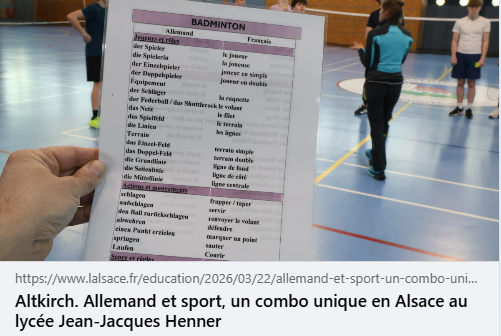 • De l’allemand et du sport, un combo unique en Alsace au lycée Henner 10 avril 2026